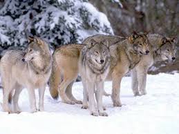 When wolves hunt they hunt in groups or packs. The picture below shows a bull being chased by some grey wolves. As you can see, the wolves are surrounding the bull. Wolves do this because they probably want to stop or again surround the bull so the wolves can have a better chance in killing the bull.